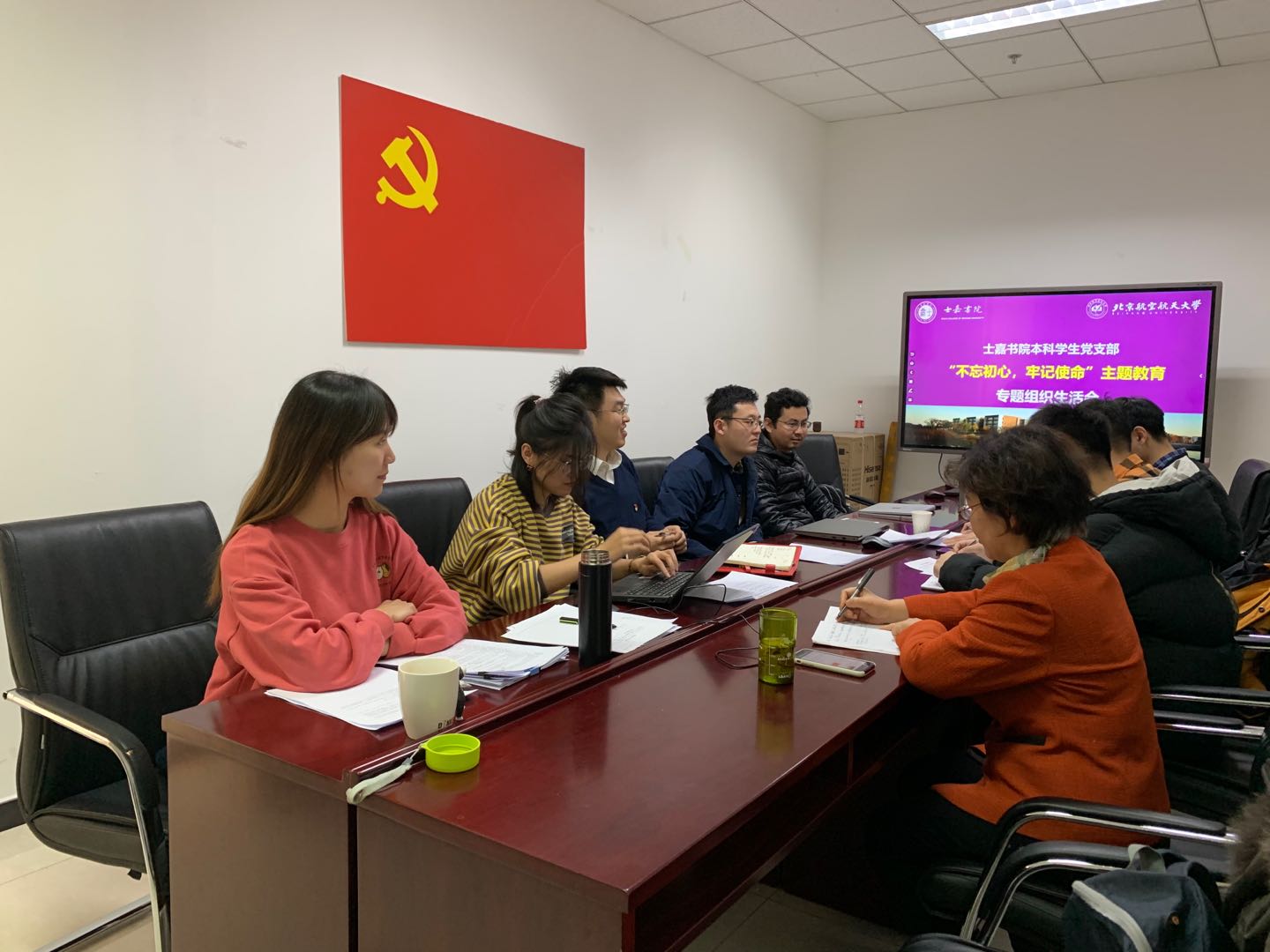 (通讯员 于万欣 冀赵杰)2019年12月4日上午,士嘉书院本科学生党支部于沙河校区主楼B607召开“不忘初心,牢记使命”主题教育专题组织生活会,进行近期党建工作的总结及党员的批评与自我批评,支部全体党员出席会议,支部特邀党建组织员王梦丽,金沙集团1862cc橙色党委委员、致真书院执行院长闵敏列席会议,会议由支部书记冀赵杰主持。