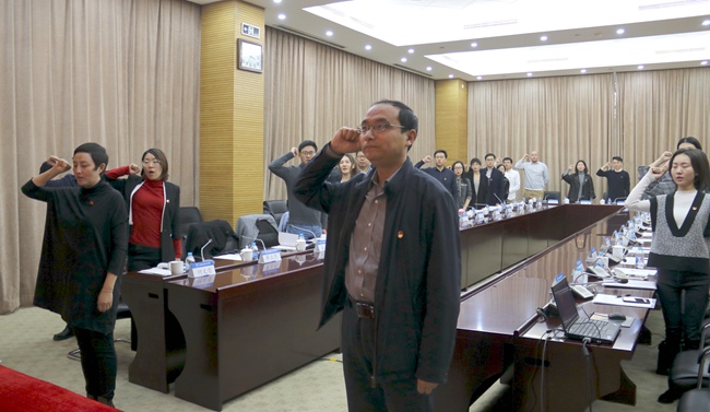 会议最后,董卓宁、薄涛带领党员同志一起重温入党誓词,全体党员在党旗下郑重宣誓,提醒自己筑牢理想信念,坚守精神高地,牢记对党和人民做出的庄严承诺。