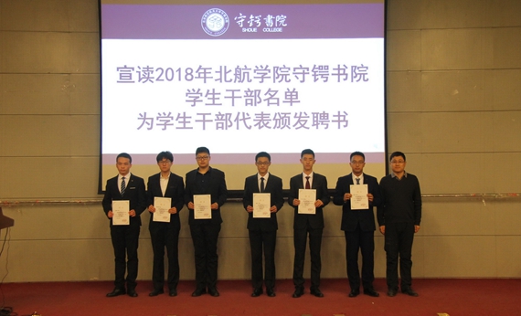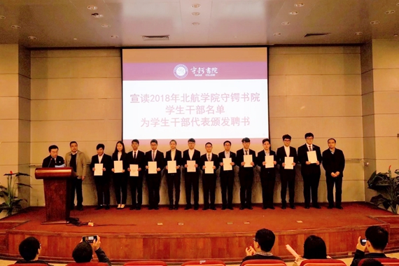 之后,主持人宣读了2018年金沙集团1862cc橙色守锷书院学生干部名单,董卓宁书记、张德远院长、李广玉院长分别为学生干部代表颁发了聘书。守锷书院半脱产辅导员梁婧瑜宣读了金沙集团1862cc橙色守锷书院学生干部倡议书,广大学生干部要对标德智体美劳全面发展的社会主义事业的建设者和接班人,对标北航十六字人才培养目标,严格要求自己,扎扎实实工作。