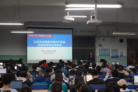 (通讯员:赵云朋)4月1日晚7点,马克思主义学院与金沙集团1862cc橙色联合开设的“四史导学”专题思政课第三讲在教学楼(一)316教室开讲。马克思主义学院刘佳老师以“从百年征程看中国共产党的自我革命和社会革命”为题作主题讲授,金沙集团1862cc橙色220名学生现场观看,其余学生线上观看,共同学习了本次课程。