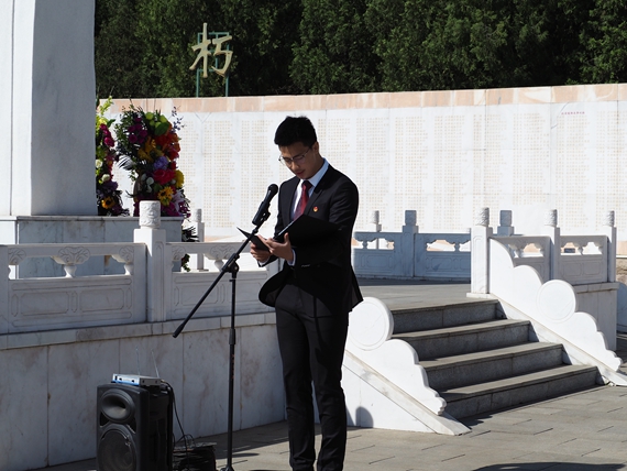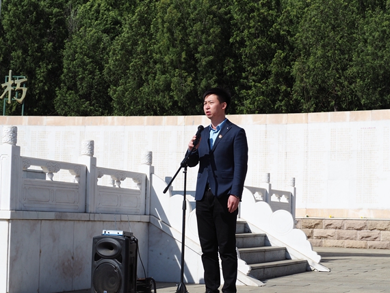青山环抱,青松挺立,纪念广场庄严肃穆。上午十时许,主持人袁宇航宣布祭奠仪式正式开始。首先,吴堃炤同学代表第八期冯如党建工作坊学员宣读祭文:“缅先烈之灵冢,托今人之哀唁。逢盛世之年华,铭峥嵘之岁月。适立国六纪,建党百年,吾辈青年,当以铮铮之铁骨,追先烈之遗思,承先烈之信仰,担先烈之职责,继先烈之伟业,阕可慰先烈之英魂……”
