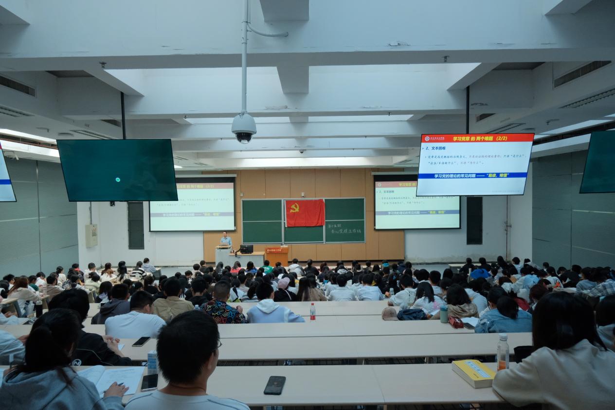 10月8日下午,由马克思主义学院高宁老师主讲第一节专题思政课《结合党史学党章——以<入党誓词>为例》正式开讲。知行书院、沈元学院的入党积极分子、老师及辅导员300余人参加本次党课。