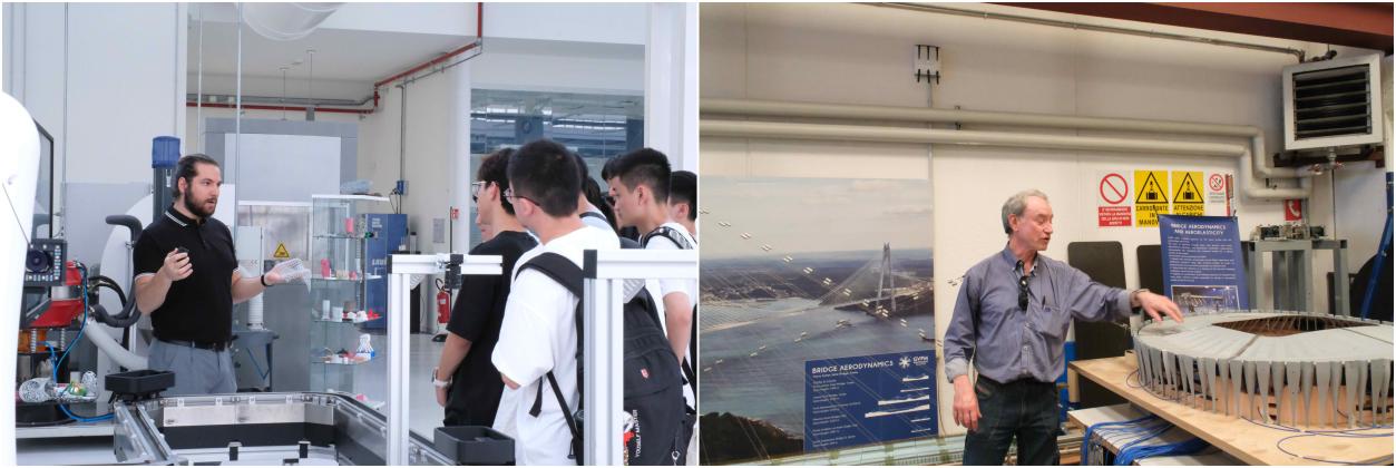 理论学习之外,学员们还参观了米兰理工大学的多个高科技实验室,进一步深化了他们对所学知识的理解。7月18日,学员们抵达了米兰理工大学的MADE能力中心实验室及风洞实验室。在MADE能力中心实验室,学员们在Adalberto教授的引导下,深入了解了数字孪生技术以及意大利工业4.0项目的推进情况,亲身体验了虚拟现实和增强现实技术在现代工业中的应用潜力。在风洞实验室,学员们通过亲身体验和教授的详细讲解,认识到风洞技术在航空航天和汽车制造等领域的重要性并深受启发。7月20日,学员们参观了Mechanics Lab增材制造实验室,见证了增材制造技术的精妙应用,特别是在复杂结构制造领域的突破性进展,为未来的工业设计带来了新的可能性。