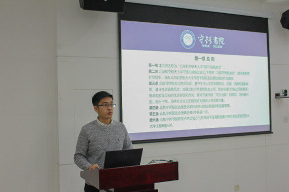随后,守锷书院专职辅导员王涛宣读了《北航守锷书院院友会章程》,经现场全体代表表决,全票通过。
