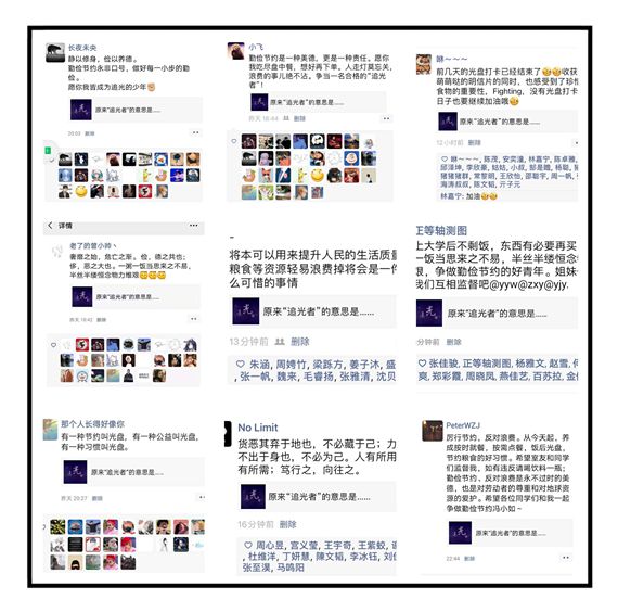 推送发出后,书院近半数的同学转发至朋友圈并配文写下了自己希望养成的勤俭节约好习惯,包括按时规律就餐、保证饭后光盘、网购时谨慎购买、不盲目拼单凑单、宿舍人走灯灭、节约用纸双面打印等。也有部分同学发表感想,积极宣传勤俭节约的必要性和重要性,倡导周围同学一起养成好习惯,在书院内引起强烈反响,形成了厉行节约、反对浪费的良好风气。