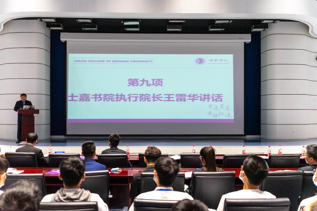 士嘉书院执行院长王雷华讲话。他指出,北航“大类招生、大类培养”人才培养模式改革为学生会发展带来了挑战与机遇,学生会作为书院制通识教育阵地的重要组成部分,要积极引导和服务同学们成为具有高度历史使命感和社会责任感的理想高远、学识一流、胸怀寰宇、致真唯实的领军领导人才。王雷华院长深情寄语同学们,要强化思想引领,培养政治能力;深化座谈调研,培养调查研究能力;增强大局意识,培养科学决策能力;总结工作规律,培养改革攻坚能力;提高风险意识,培养应急处突能力;密切联系同学,培养群众工作能力;狠抓工作闭环,培养抓落实能力,要传承红色基因,培育创新基因,共同弘扬青春主旋律,传播青春正能量,争做优秀的新时代新青年,将士嘉书院建设得更加美好。