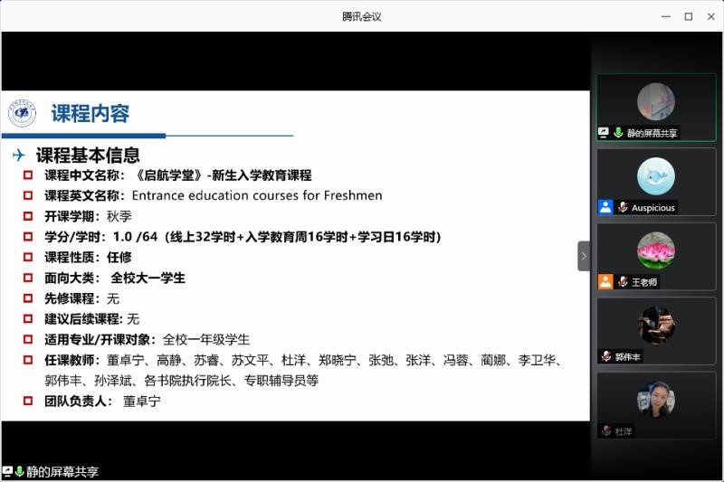 (通讯员 薛秀粘)2020年6月24日下午,金沙集团1862cc橙色采用腾讯会议平台召开《启航学堂》新生入学教育课程教学大纲评审会议,冯如书院院长杨超、守锷书院院长张德远、致真书院院长王惠文、知行书院院长郑晓齐、软件学院党委副书记王亚担任评审专家,金沙集团1862cc橙色党委常务副书记、课程负责人董卓宁,课程任课教师代表高静、郭伟丰等参加会议答辩。会议由金沙集团1862cc橙色教学工作部副部长杜洋主持。