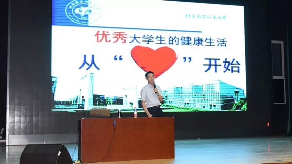 随后,北航心理咨询中心马喜亭老师为新生们上了大学第一课——“优秀大学生的健康生活(从心开始)”。马老师从认识自己、了解环境、管理自我三个方面进行阐释。