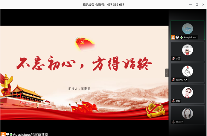 (通讯员 郝彩林)2020年5月20日,教学工作部组织开展主题为学习老科学家精神和五四精神的第五次线上“学习日”活动,王赛男领学,教学工作部全体人员参加。