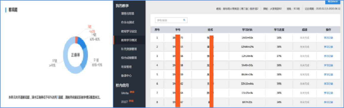 学生在U校园数字课程学习情况