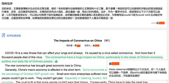 学生在IWrite上的作文互评
