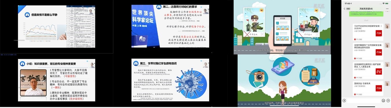 冯如书院坚持总体国家安全观,结合北航特殊校情和新冠肺炎疫情防控工作实际,以政治安全、重大传染病和公共卫生安全、网络安全、反间谍安全等为宣传教育的主要内容,号召学生学习宣传权威部门和主流媒体刊登的相关资料。党支部借助“学习强国”平台集中学习习近平论坚持总体国家安全观(2020年)专辑以及相关视频资料,使大家进一步树立“维护国家安全、人人都是主角”的主人翁意识,党支部全体党员结合自身工作和生活,纷纷发表了自己的心得体会。