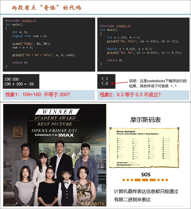 如在讲解数据的表示和存储开头时,设计反直觉的例子,引导学生思考,透过现象了解本质。