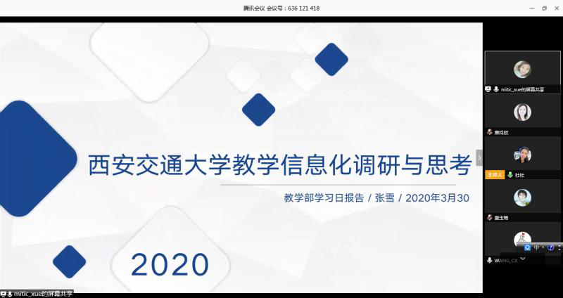 (通讯员 郝彩林)为深入贯彻学校“学习日”活动精神,不断提升部门人员研究能力,扎实做好本职工作,3月30日教学工作部开展本学年第三次“学习日”活动,由张雪做西安交通大学教学信息化专题调研分享报告,教学工作部全体人员参加。