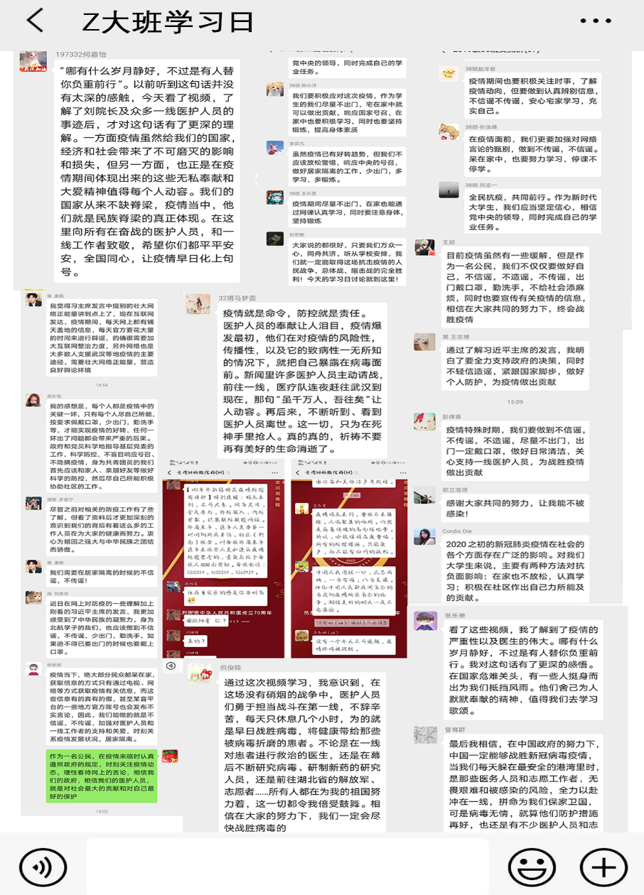 学生表示,寒假期间书院开展的每周“学习日”让自身提高了对疫情防控的重视,并且坚定了战疫信心和学习斗志。新学期已经到来,广大一线战士创造出了安全的后方环境,各位任课老师连夜赶制了无数录播课件。学生表示,在非常时期能够维持学习生活仰仗于他人的贡献,应该珍惜机会,不断奋斗。