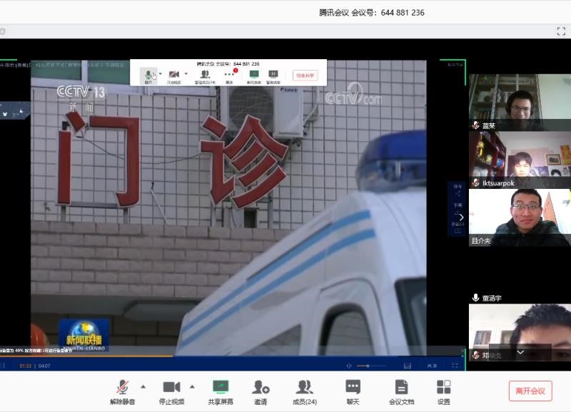 “学习日”第一阶段于2月26日14:30准时开始,金沙集团1862cc橙色全体学生准时打开了“腾讯课堂”app书院各大班“学习日”直播频道进行了集体学习。大家首先一同学习了习总书记抗击疫情的重要讲话,对我国疫情的现状有了更深刻的了解,也愈发清楚了疫情期间的防疫行为规范。此后,“疫”起学习主题学习会开始了直播,虽是线上学习,大家依旧保持专注,在主讲人的引导下,同学们先是学到了许多有关当前疫情的科普知识,明白了认真落实防疫要求的重要性。在舍小我取大我的医护人员,不畏艰险的逆行志愿者事迹分享环节,无数事迹令人动容,肃然起敬的同时,同学们也坚定了坚决配合国家防疫工作的决心。