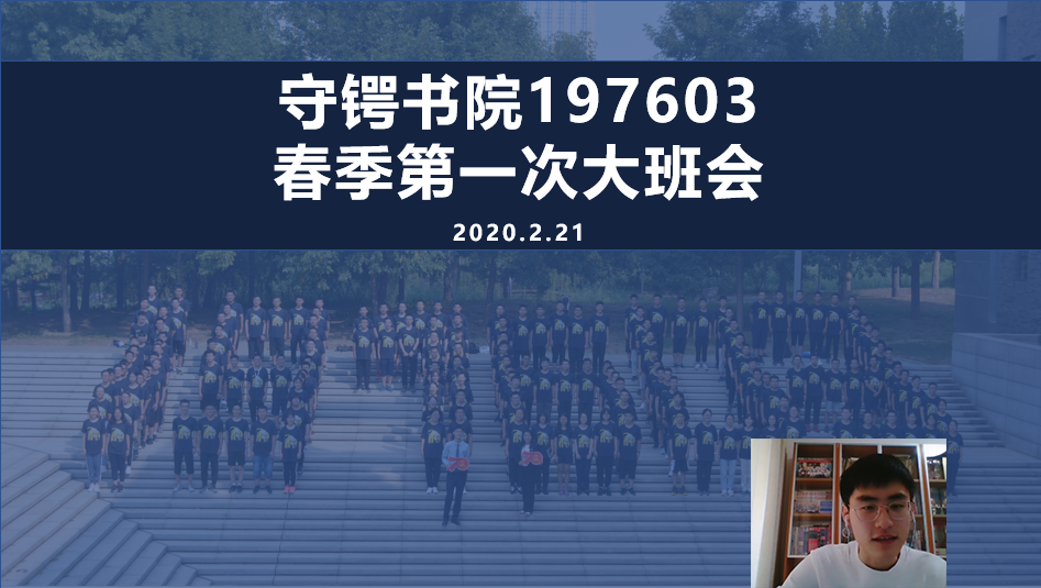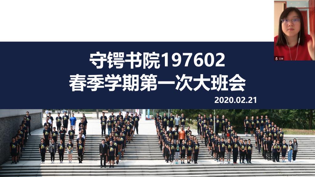首次体验线上举行百人班会,一小时中,导员悉心讲述了疫情相关知识和一些政策规定,启迪我们尽己所能,共克时艰,也传达了网上学习的安排和书院的支持计划,并指导我们为即将到来的“云学期”做好充足的准备。可谓别开生面、豁然开朗。