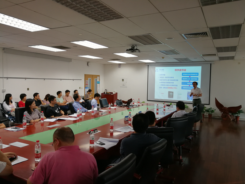 由学业总导师张有光老师进行经验分享,重点阐述了在导学活动中,开展“导学读书会”活动需根据书中内容多角度和学生讨论、有效的将书中内容“精华”和“鸡肋”区分开、多多促进学生主动理解书中内容;开展“大学规划研讨”活动时需要多让学生自由讨论、在娱乐活动中进行互动、通过相对正式的形式让学生了解行业、鼓励学生多进行规划。张有光老师希望导学活动可以帮助学生们解惑和转换思维,让学生对未来充满希望,并且可以为之努力学习和钻研。