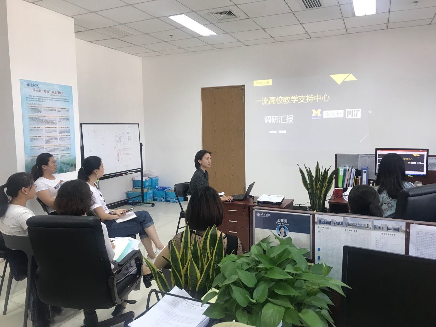 全体人员围绕这一主题展开了热烈的讨论。通过本次分享,熟知了国内外高校教师支持中心发展的意义及现状,分析了目前金沙集团1862cc橙色在教师教学支持方面的做法和不足,针对如何为大类核心课程教师提升教学质量的问题进行了深入的研讨,为今后工作指出了方向。