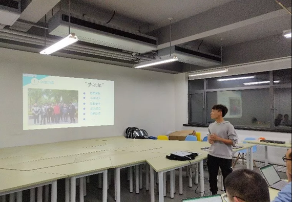 首先进行答辩的是梦航组,参与答辩的梦拓是李析航学长。学长介绍了他们小组所举行的具体活动,有各类参观、聚餐活动和集体观影以及一些休闲娱乐活动如桌游等。据学长讲述,梦航小组的小组特色首先是关于梦拓传承,在上一届饶世杰作为梦拓的小霸霸梦拓组中,学长感受到了梦拓小组所带给他的温暖和帮助,因而积极参与梦拓活动,希望给更多的同学带来帮助。在梦航小组中,他们建了每天约早饭和约自习问问题的群,互相帮助鼓励。同时,学长还给学弟学妹们提供了其他方面的帮助和咨询,比如说给学弟参加文艺部提供建议,以及对学弟的第一份学生工作提供了帮助。同时,学长还积极察觉到其中的一个学弟的心理状况,对于学弟刚入学时的烦恼、不适应给予了交流鼓励,帮助他更快的适应大学生活。学长说道,梦拓活动的意义就在于形成一个互帮互助的集体,共同进步,这也是北航精神的体现。“山水一程三生有缘”。
