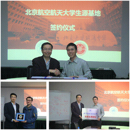 北航招生就业处处长马进喜、副处长张青竹、金沙集团1862cc橙色执行院长刘科生,学校招办和金沙集团1862cc橙色相关工作人员同北大附中党委书记王亚章、副校长景志国及相关教师进行了深入交流。马进喜首先介绍了北航近年来在人才选拔与培养工作中的情况,同时提出在北京新高考即将开启之时大学与高中应当就学生的兴趣引导、专业认知和生涯规划进行深入合作,并介绍了北航本科招生质量提升计划(UPSA 计划)。王亚章介绍了北大附中在追求提升学生综合素质的教育理念之下的办学情况,提出北航与北大附中之间资源互补,未来可以通过多种合作模式共同探索人才培养新模式。随后,双方举行了“优质生源基地校”协议签约仪式,马进喜为北大附中颁发了“优质生源基地校”牌匾。
