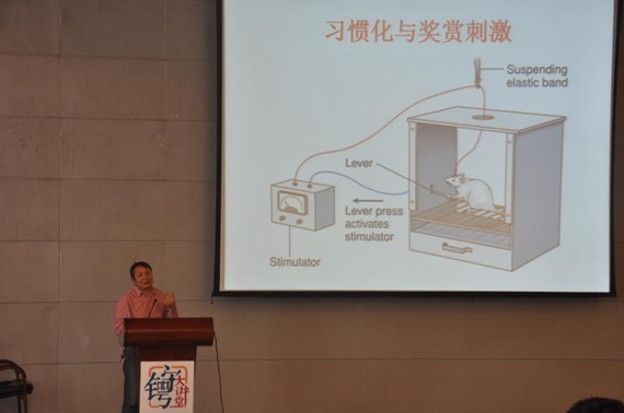 然后,报告进入正题,唐业忠研究员向大家解释了脑容量膨大的意义和神经网络与神经元网络。接着,针对动物和人都能够瞬间记住突发事件,但与记忆直接相关的突触的形成却需要较长时间这一逻辑矛盾,他提出了冗余神经元网络这一理论。为了维持大脑里大量的冗余神经元网络,人和动物就渴求各种刺激,包括内外刺激的输入。这就很好地解释了达尔文理论也无法解释的人类的玩耍行为、睡梦、成瘾、自杀、同性恋、爱情、艺术和宗教等现象。同时,对奖赏刺激的期待构成欲望,驱动人类文明的起源和进步。