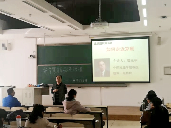 “如何走近京剧”课程于3月5日上午正式开课。课程由中国戏曲学院的费玉平教授为大家授课。费玉平老师从京剧的起源讲到京剧的发展,从京剧的生旦净末丑五个行当再到京剧“写意型、虚拟性、程式化、皮黄腔”的特点,同学们跟随着费老师的脚步,逐渐地走近京剧,并感受着她那独特的魅力。在费老师的指导下,同学们热情高昂,敢于发声,认真练习,赢得了费老师的夸奖,同时也从中感受到了费老师心底的那份对于京剧的深深的热爱。