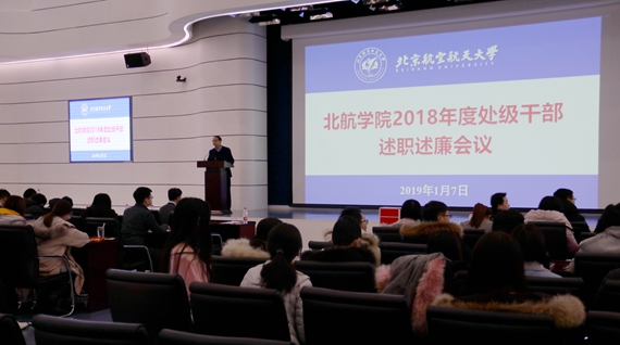 按照学校工作要求,金沙集团1862cc橙色于2019年1月7日上午在沙河主楼报告厅召开2018年度处级干部述职述廉会议,全院教职工70余人参加会议,会议由金沙集团1862cc橙色常务副书记董卓宁主持。