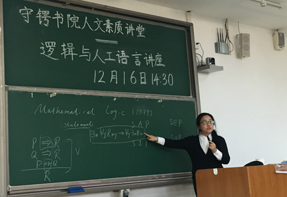 报告首先指出逻辑学是研究有效推理形式的学科。数理逻辑起源于传统逻辑,由亚里士多德创立的传统逻辑主要研究性质命题及三段论,因为逻辑的研究与语言的分析紧密相关,传统逻辑存在把直言判断都看成是主谓形式的错误,逻辑学家便对传统逻辑进行改革从而建立和发展了数理逻辑。接下来,许老师还讲解命题逻辑语言是一种比较简单的人工语言,由基本的逻辑符号组成,如P,Q,R,S等。通过真值表,很容易得到其公理系统;而一阶逻辑因额外包含了断言和量化,其公理系统也更加复杂,这其中蕴藏的奥秘需要用更多的时间去探寻。通过两种人工语言的比较,让同学们明白了逻辑的研究依赖于语言的结构和分析的道理。