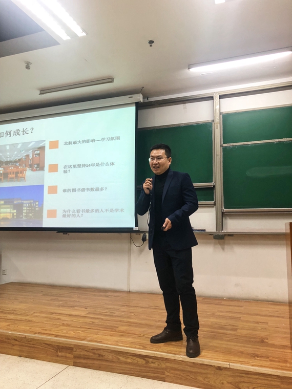 肖凤军学长首先介绍了学术方面的经验方法,告诉大家做科研应当从以下三个步骤着手。首先要有目标,持之以恒地对感兴趣的事情进行深入的探究。其次,要有专业精进的训练,对相关领域的已有成就做到了然于胸,从而进一步提炼出自己的观点。最后,学长强调应当学会借助北航这个平台,打造自己专属的学术代表作。在创新创业方面,学长回答了当今大学生普遍的疑问——是否应当在大学期间创业?对此,学长表示,对于大学生来说,知识是创业的资本,应当将专业能力作为自己创业的优势,在学生期间打好基础,千万不可顾此失彼。此外,学长将创业的三要素概括为——产品、团队、资本,三者缺一不可。产品是公司的门面,塑造优质产品与服务需要一个优秀的团队,而资本又是这一切的重要保障。最后,学长嘱托我们,最好的创业方式是“在自己身上投资,在自己身上产出。”用知识武装自己,用好的能力包装自己,把自己打造成一个优质的产品,才是人生最大的赢家。