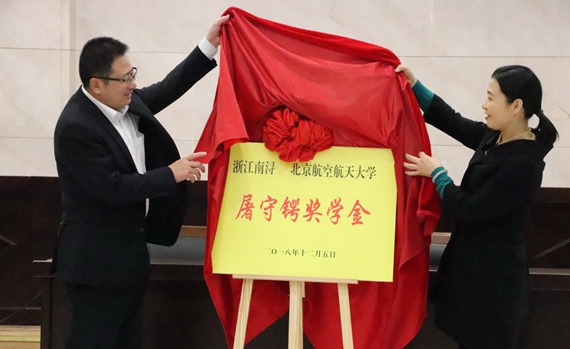 金沙集团1862cc橙色校友联络发展处王有洪处长和钱红梅副区长共同为“屠守锷奖学金”揭幕,与南浔镇政府交换签署捐赠协议,为捐赠企业代表颁发了捐赠证书。王有洪处长感谢南浔镇政府及辖区企业捐赠设立奖学金,并希望永恒的守锷精神能将南浔和北航联系在一起,双方进一步加强交流,促进合作,加大投入,将屠守锷精神发扬光大。