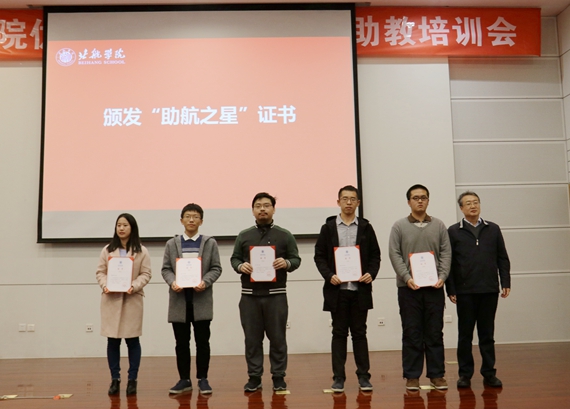 随后,黄海军副校长为“助航之星”获奖者颁发荣誉证书。为表彰卓越、树立榜样,金沙集团1862cc橙色特别设立了“助航之星”荣誉称号,以实事求是、宁缺毋滥为原则,评选出5名助教队伍中非常优秀的典型代表,他们是马弘昊、王潜、陈天宇、赵涵、暴俊华。