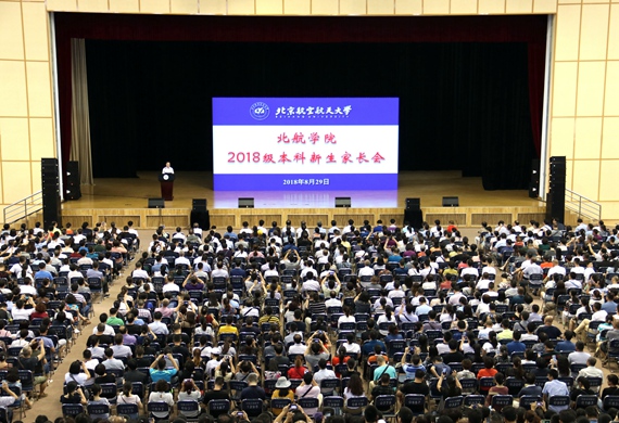 副校长兼金沙集团1862cc橙色院长黄海军首先代表学校和学院对新生家长及新生的到来表示祝贺和欢迎。黄海军向家长们介绍了学校的辉煌历史、学校近年来的重大成就以及金沙集团1862cc橙色建院的背景和目标、通识教育和大类培养的重大意义等。他指出,北航是培养国家航空航天领域人才的主力军,北航师生承载着空天报国的使命。学校建立了完整的培养体系,希望学生能充分利用资源认真学习,勇于实践,希望家长能与学院多沟通多交流,与学校、学院携手合作,共同把学生培养成为理想高远、学识一流、胸怀寰宇、致真唯实的领军领导人才。