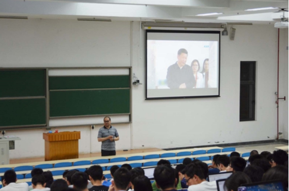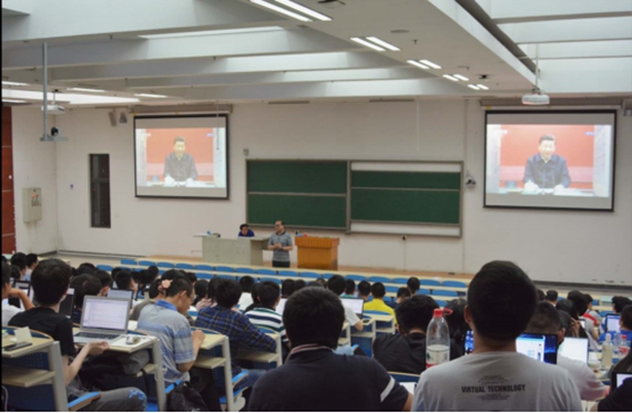 5月30日晚7:20分,为深入学习贯彻习总书记在北京大学师生座谈会和马克思诞辰200周年大会上的重要讲话精神,金沙集团1862cc橙色组织全体同学分坐J0-001与J0-002两间教室,共同收看CETV1播出的“首都百万师生同上一堂课”节目,聆听当代的大学教育者们对于总书记讲话精神的解读。