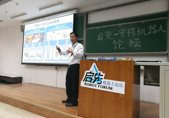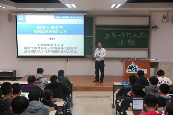 (通讯员 张丰川)4月11日晚,由守锷书院机器人协会承办的“启先-守锷机器人论坛”系列报告第二讲在J3-311顺利进行。金沙集团1862cc橙色机器人研究所王党校教授以《触觉人机交互:连接虚拟和现实世界》为题目,为同学们带来了一场精彩的报告。报告会由专职辅导员蒋茁主持,来自守锷书院、冯如书院、士嘉书院、大二专业学院共220名同学参加报告会。