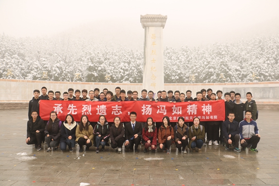 接着,在夏宇辰同学的带领下,48名同学在烈士纪念碑前庄严宣誓:“缅怀革命先烈,学习人民英雄;继承先辈遗志,发扬优良传统; 牢记历史使命,以北航冯如学子的担当,实现航空航天强国梦想!”