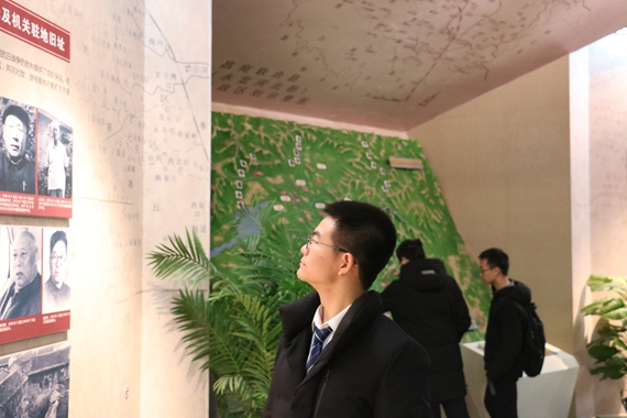 仪式结束后,同学们参观了革命历史纪念馆,追思为革命事业抛头颅洒热血的烈士英雄。同学们纷纷在纪念馆的电子留言板上留言,舒沛玄写到:“革命英雄永垂不朽,牢记使命,筑梦蓝天!”随后,同学们离开纪念馆,上山祭扫烈士坟冢。拾级而上,残雪压枝,青葱掩映下的是烈士们的墓碑,有的记载了烈士英雄事迹,更多的则是无名英雄。正可谓“青山处处埋忠骨,何须马革裹尸还!”