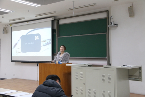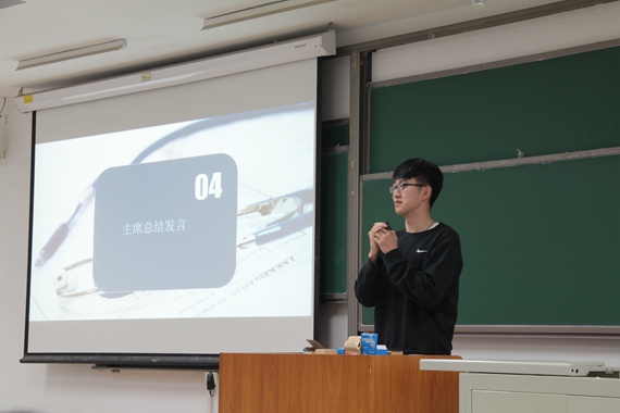 大会第二项,由学生会主席郭雅雯进行总结。她首先表达了对新创建的致真书院学生会顺利度过第一学期的祝贺,以及对自学生会创建以来共同努力、携手并进的学生会全体成员的感谢。之后结合自身在学生会工作多年的经验,指出了学生会工作中易被忽视的一些细节,提出了切实可行的建议。