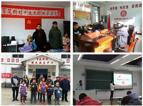 在学习贯彻十九大精神主题系列活动中,守锷党建工作坊学员黄泽军同学为梦拓小组内2017级的学弟学妹们宣讲十九大精神,实践和传递一名入党积极分子的信仰;余建侨与四川大学一名大学生组成实践队前往重庆市涪陵区武陵山乡百花桥村开展“践行十九大精神,扶贫更要扶志扶智”主题活动。