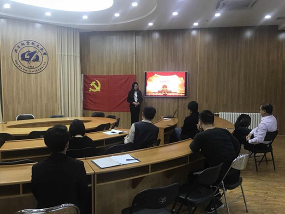 答辩会在支部成员齐唱国际歌后开始,党支部书记孙泽斌同志首先介绍了入党答辩的流程和要求,积极分子确定为发展对象答辩是我校加强发展党员流程的创新举措,旨在从多方面考察入党积极分子的思想动态,更好地把控大学生党员的质量,同时在答辩的过程中,入党积极分子之间也可以相互学习,共同提高。