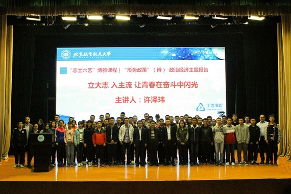最后,许泽玮老师表示,希望同学们可以以此次讲座为鉴,认真思考自己的未来,积极奋斗,勇于尝试,将“北航精神”传递给每一个北航人,记住“今天我以北航为荣,明天北航将以我为荣”;将“爱国情怀”融入到我们所奋斗的事业中去,响应国家与政府的号召,尝试创业,不怕艰苦,迎难而上;将“立大志,入主流,让青春在奋斗中闪光”这句话烙印在每一个北航人的心里,让青春无悔,为自己,为社会,为国家做出自己独特的贡献。