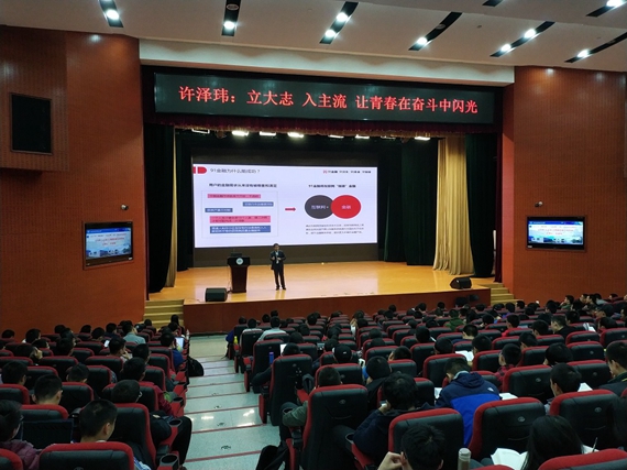 许泽玮老师首先从自身创业经历谈起,与同学们分享了他在创业时期的心路历程与拼搏心经。2011年9月1日,许泽玮老师创立91金融,在北京西城一个狭小的屋子里,扎根于基层,干事创业。2014年6月,91金融公司成为了首个被比尔·盖茨参观的中国科技金融公司。之后,许泽玮老师建设了党建工作坊,这使91公司成为第一家成立党组织的互联网金融企业,而这也让公司凝聚力更高。同时他还积极投资建设红色文化,并且将所得利润“取之于民,用之于民”,精准扶贫。回首来时路,许泽玮老师结合自身的经历,告诫同学们,要在创业前做好充分的准备,一定要有强大的动力来支撑自己的信念。不要太看重利益的得与失,要看重过程,积累经验,培养思维方式,争取做一个立志报国的有为青年。