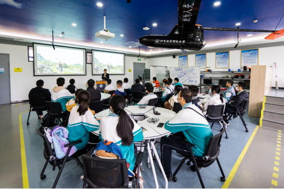 中心开放了北斗、无人机、机器人、5G和人工智能五个创新实验室,瞄准当前热点领域和前沿科技,为学生们做了《中国的北斗 世界的北斗》、《你好!无人机》、《大话空间机器人》、《零距离体悟5G》、《无处不在的人工智能》五场高水平科普讲座。学生们对相关领域的发展和应用有了初步了解,并体验了有关高新产品。聆听完讲座后,学生们参观了沙河校区校园,并饶有兴致的参与了正在校园内举办的“航天+”嘉年华系列活动。