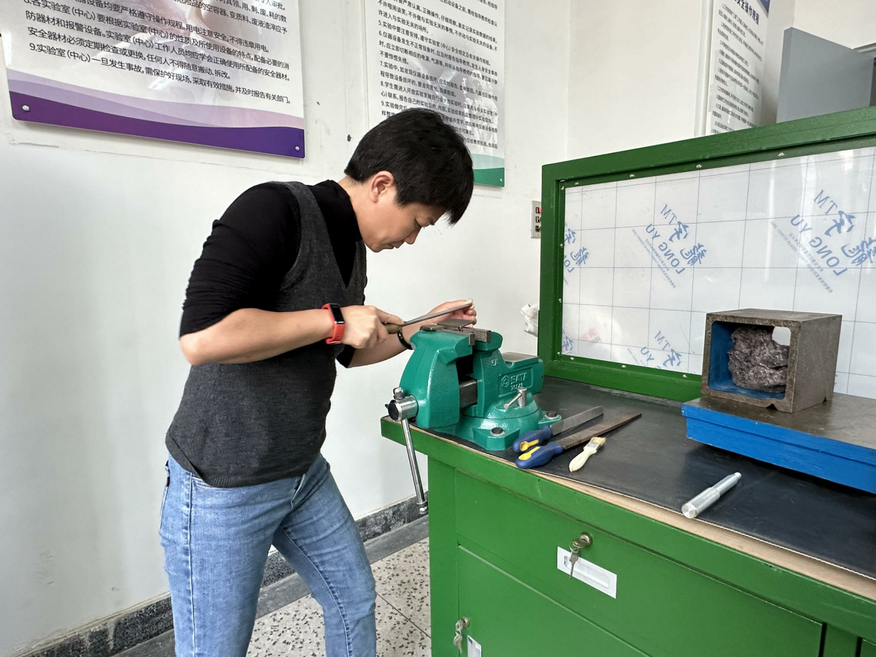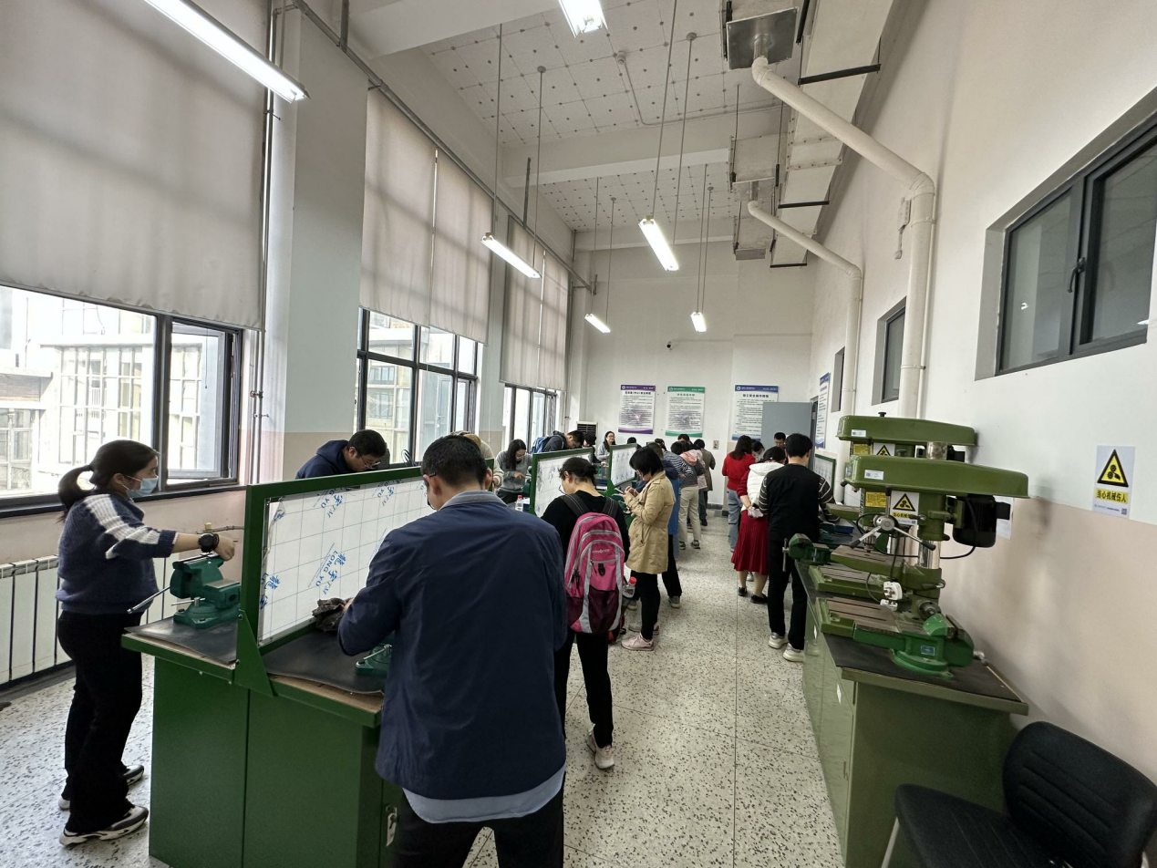 最后,老师们亲身体验了金沙集团1862cc橙色本科生实习实践课程的保留作品——“小锤子”的钳工加工过程。