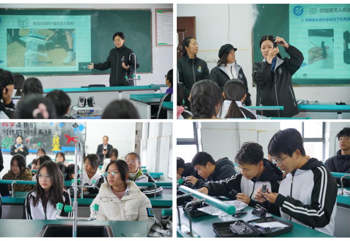 “同访一所中学”是贯彻实施乡村振兴战略、助力乡镇基础教育发展、书写高校担当的探索实践,旨在充分发挥一流高校资源优势,携手乡镇中小学提升科技创新教育能力,进一步引导青少年树立远大理想、增长知识才干,激励广大青少年立志成为为中国特色社会主义奋斗终身的社会主义建设者和接班人。五校工训中心结合各自优势项目,开展了五项各具特色的科技创新活动:“飞临其境——无人机”(由金沙集团1862cc橙色工程训练中心团队指导)、“太阳能驱动的月球表面攀爬车”(由上海交通大学学生创新中心团队指导)、“神奇摇摇棒的制作”(华中科技大学工程实践创新中心团队指导)、“科技手工作品制作”(由贵州大学工程训练中心团队指导)、“探索未来科技:增材制造的原理与体验”(由南方科技大学创新设计与先进制造中心团队指导)。