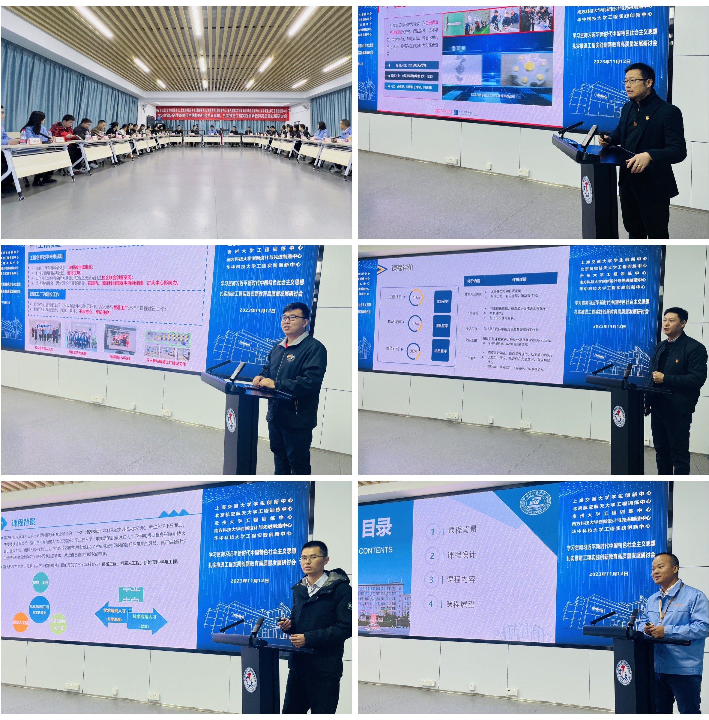 研讨会上,上海交通大学学生创新中心总工程师、教务办主任、基础实践教学部主任冷春涛,金沙集团1862cc橙色工程训练中心创新部主任孙治博,贵州大学工程训练中心支部委员、工会主席、电子实训部主任王猛,南方科技大学机械与能源工程系党委委员、创新设计与先进制造中心实验师黄渊建,华中科技大学工程实践创新中心支部委员、工会委员、机械制造实验室主任罗龙君分别以“课程思政赋能实践育人的探索与实践”“‘一体两翼’工程创客育人体系的探索与实践”“探索思政教育与工程训练课程的深度融合——以电子创新实践课程为例”“理论-实验-项目三位一体的制造工程认知实践课程改革”“基于拔尖创新人才培养的学科交叉创新课程实践与探索”为题,分享了工程实践创新教育改革心得。研讨会上,大家畅所欲言,深入交流,现场气氛热烈而融洽。