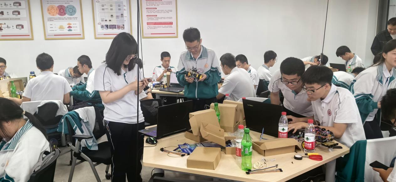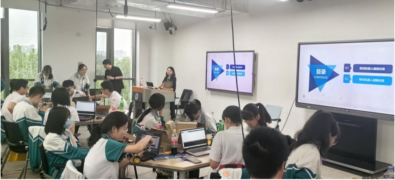 在了解了基本理论知识后,学生们在老师的指导下,完成智能机器人的拼装,机器人的主控及IDE设计,最终实现机器人的寻迹和避障功能。