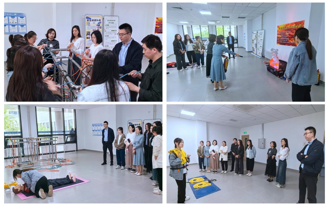 参观学习活动中,在专业讲解员指导下,大家深入学习了胸外按压准确手法、学习操作了自动体外除颤器,通过模拟使用过程,深刻认识到了在紧急情况下如何进行快速救援。在消防安全区虚拟灭火器操作体验环节,通过高度仿真的模拟实战演练,学会如何正确操作灭火器,掌握了初期火灾现场的应对技巧。在逃生绳结模拟区,大家认真学习了各种逃生绳结的手法并逐一进行实操练习,以确保面临险情时能够迅速且准确地利用逃生绳等救援工具安全逃生。