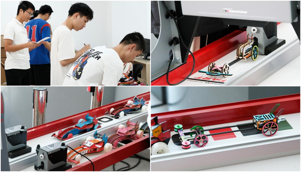 其中来自交通学院的两位同学发挥自己的专业特长,自主设计并加工具有独特外形的小车,在竞速环节中一举打破赛项历史记录,跑出最快成绩。