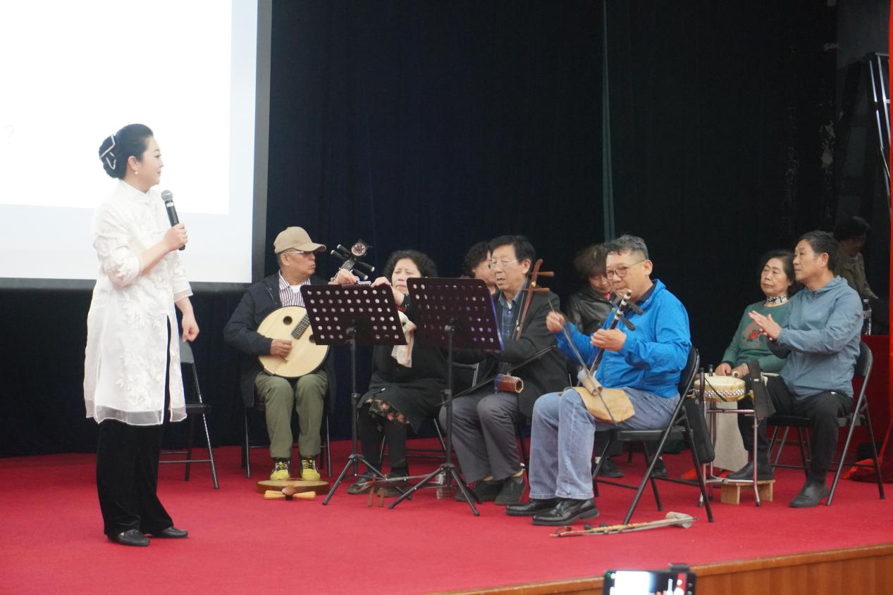 京剧表演环节,北航京剧协会离退休老教师们演唱梅派经典剧目《凤还巢》《太真外传》选段,宛转悠扬;北航曲艺团戏曲队学生演绎《霸王别姬》选段,虞姬剑舞“刺”“挑”“收”间饱含深情;北京京剧院演员演绎《三岔口》选段,技艺精湛,高难度武打动作引得阵阵喝彩;谭茗心老师演唱《穆桂英挂帅》选段,嗓音清亮、感染力强,尽显巾帼英雄风范。整场报告在全体参演师生共同演唱的《梨花颂》中落下帷幕,掌声经久不息,现场反响热烈。